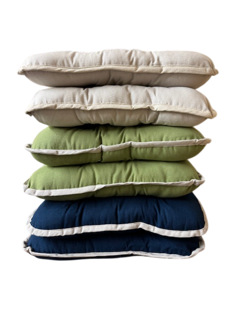 Bring comfort and style to your dining area with these luxurious piped seat pads. Generously filled for lasting support, they feature neat piped edging and tie fastenings to keep them securely in place.