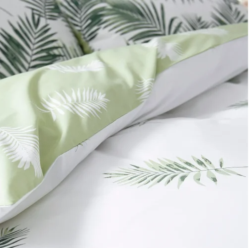 Bring a fresh, nature-inspired feel to the bedroom with this botanical design. The fully reversible set features an elegant fern motif in rich green tones on a crisp white base. Simply turn it over to reveal the inverted colourway — white ferns on a soft meadow green background — giving you two calming looks in one.