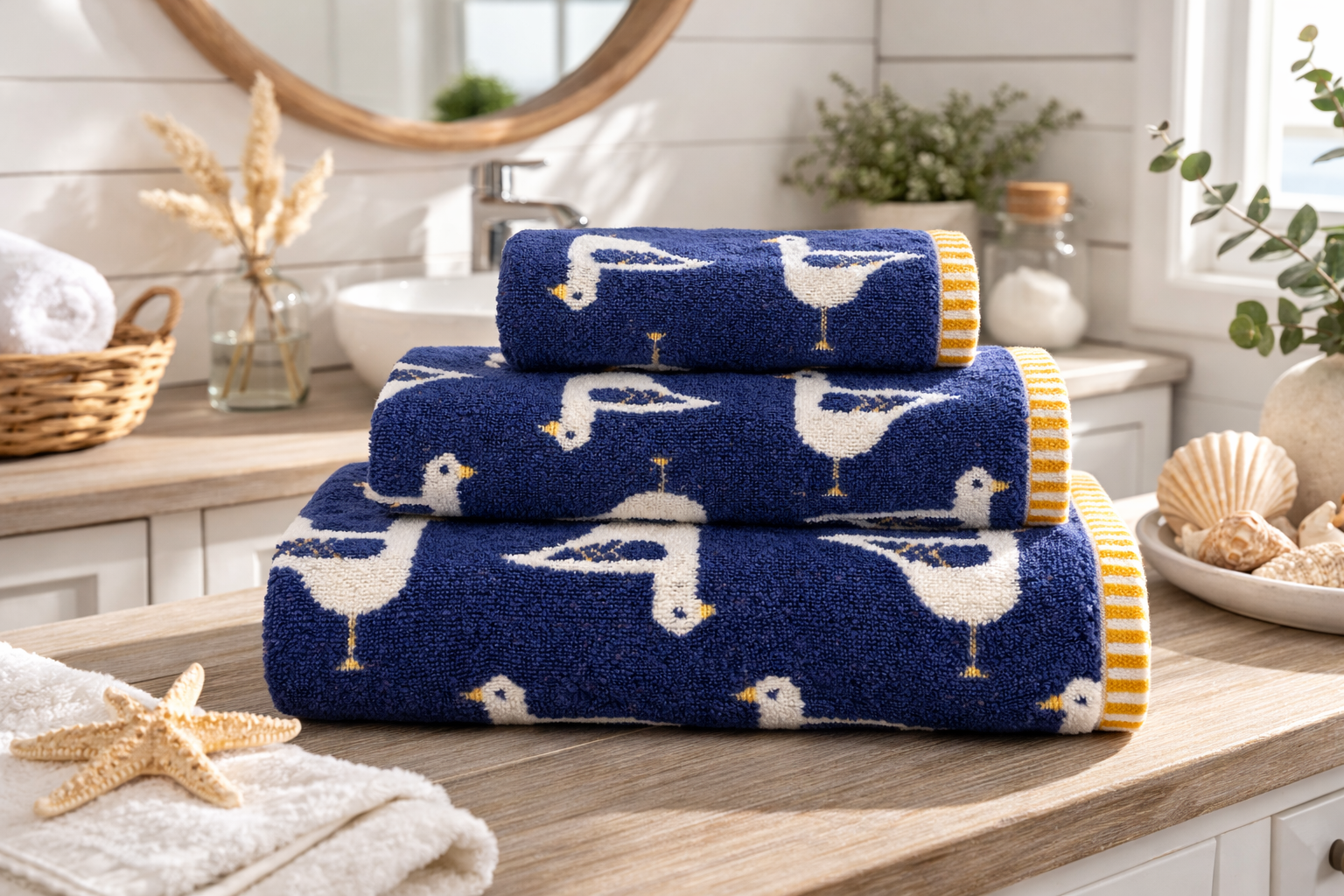 Jacquard Seagull Towel – 500g Turkish Cotton (Size & Colour Options Available)