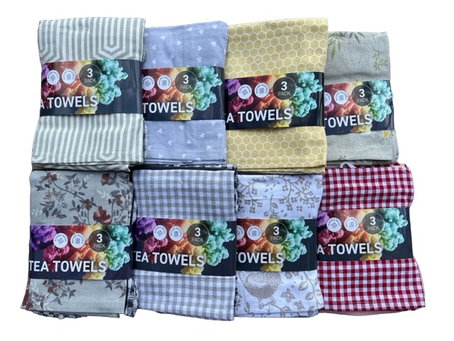 Pack of 12 Bellissimo Home Assorted 3 Pack Tea Towel